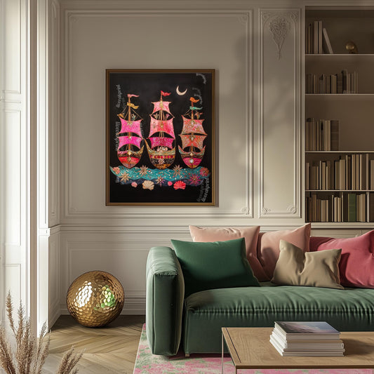 Surreal Ship Wall Art – Dark Coastal Decor – Maximalist Maritime Print – Marine Fantasy Wall Art – Dopamine Decor – Vibrant Nautical Poster
