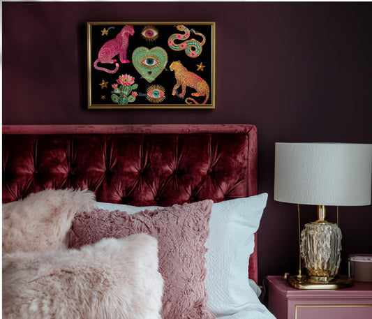 Surreal Wall Art Print – Pink Leopard Snake Eye Heart Print Dark Boho Wall Art Southwestern Cactus Decor Horizontal Art Print Psychedelic