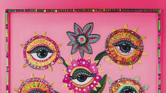Surreal Pink and Green Wall Art – Jeweled Collage Print with Eyes, Heart, Sword, and Rose – Maximalist Coquette Decor Trippy Eclectic Art