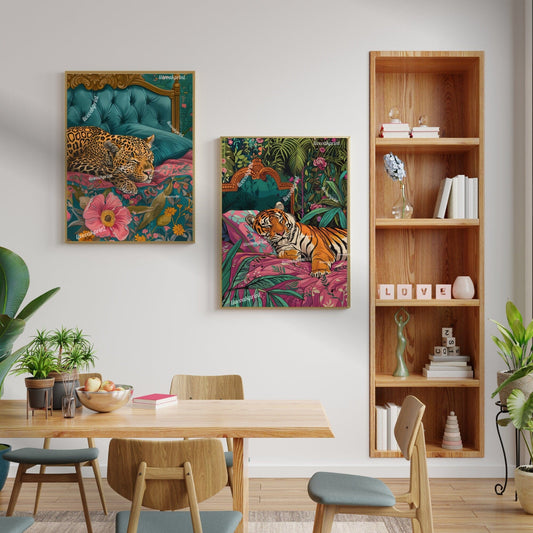 Leopard Sleeping In A Bed - Maximalist Wall Decor - Leopard Print - Leopard Wall Art - Jungle Wall Decor - Leopard Bedroom Decor