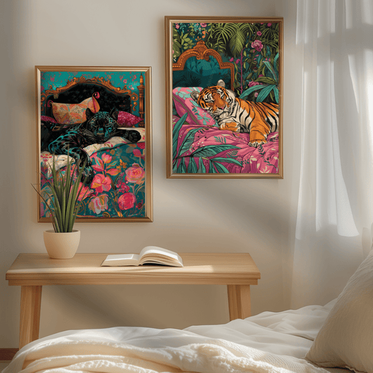 Leopard in a Bathtub Print – Maximalist Bathroom Wall Art Tropical Animal Print Pink and Green Bathroom Decor Jungle Dopamine Bathroom Decor
