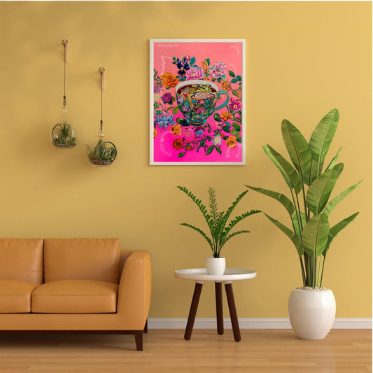 Sleepy Tiger on a Vintage Couch - Tiger Print - Maximalist Wall Art - Maximalist Tiger Print - Tiger Wall Art - Maximalist Tiger Art