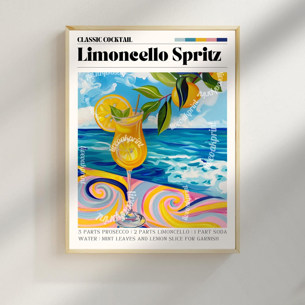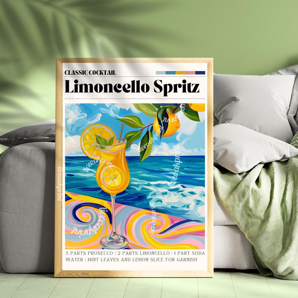 Limoncello Spritz Print - Limoncello Spritz Wall Art - Bar Cart Art - Classic Cocktail Prints - Italian Wall Art